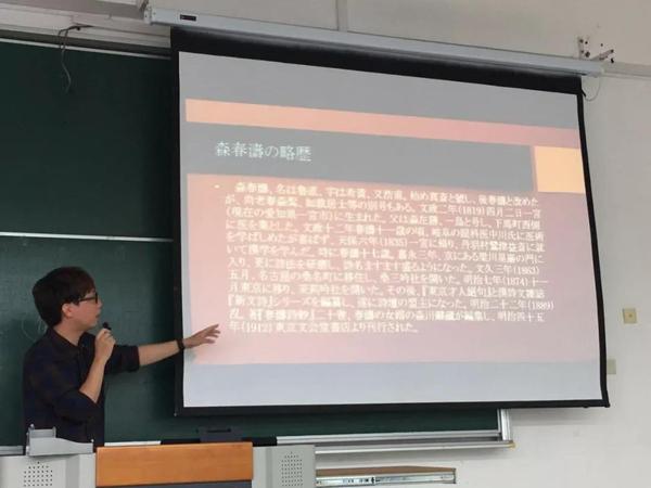2019年10月16日(星期三)下午一点,日语系校庆68周年学术报告会在第二教学楼113教室顺利举行。本次报告会由陈文佳和孟令祎老师两位老师主讲,报告题目分别为“森春涛《秋柳》次韵诗”和“日语中的名词谓语句”。日语系教师和研究生参加了此次报告会。