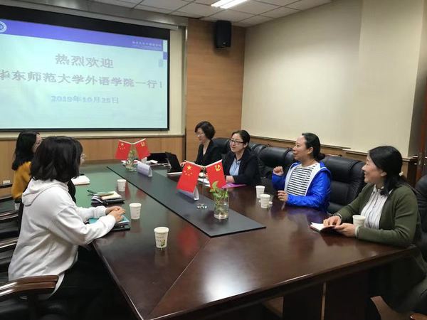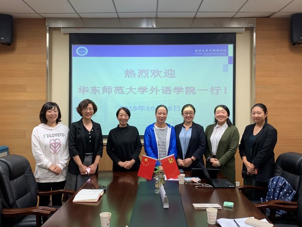 为深入开展“不忘初心、牢记使命”主题教育,扎实开展校内外调研工作,加强学习交流,2019年10月25日,9001cc金沙以诚为本党委书记闫露,院长袁筱一,院党委委员、行政党支部书记高冬琴,院长助理、2019级学术型研究生党支部书记叶青,英语系翻译系联合教工党支部委员李金彩一行五人前往南京大学外国语学院进行调研学习。