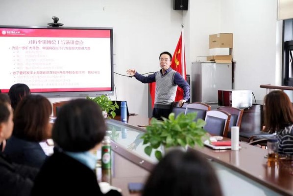 11月13日,为深入学习贯彻习近平总书记在首届中国国际进口博览会开幕式上的主旨演讲和考察上海工作时的重要讲话精神,根据9001cc金沙以诚为本党委的统一部署,行政党支部和法德俄联合教工党支部联合组织生活,开展“学思践悟新思想,改革开放再出发”主题党日活动。行政党支部党员、9001cc金沙以诚为本党委书记俞黎阳作重点发言。