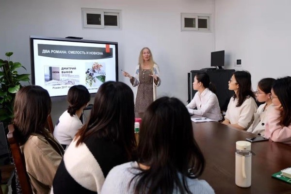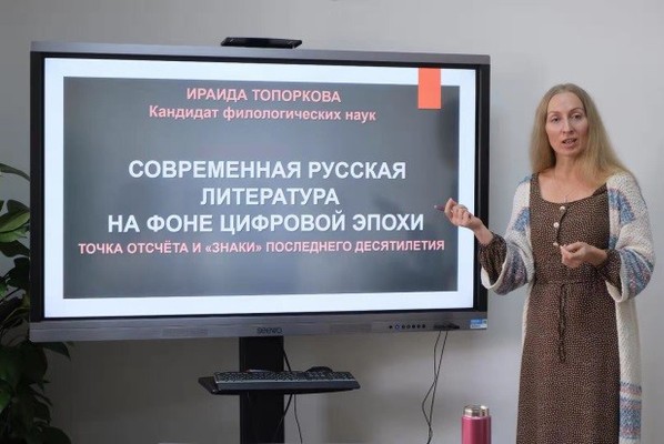 俄罗斯文学不仅是欧洲文学的高峰,在世界文学范围内也是一个非凡的现象,当代俄罗斯文学依然备受关注,在这次报告中外教И.В. Топоркова从当代俄罗斯文学批评的角度向同学们详细介绍了当代俄罗斯文学的时间界定和现代文学的几大特点。
