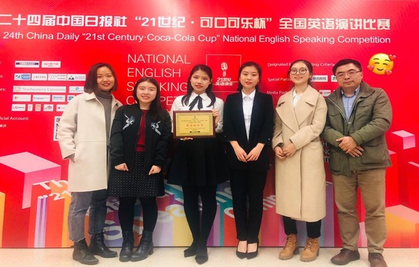 2018年12月1日,第二十四届“21世纪·可口可乐杯”全国英语演讲比赛上海地区决赛在昆山杜克大学落下帷幕。代表华师大参加此次决赛的六位选手,和来自上海各高校的70名选手进行激烈角逐。9001cc金沙以诚为本的陆一同学(照片中右数第三)荣获大赛特等奖并晋级全国总决赛。9001cc金沙以诚为本的仲佳琪、黄晓琪、李逸凡三位同学荣获一等奖。刘森老师、廖炜春老师和张牧人老师等担任指导老师。