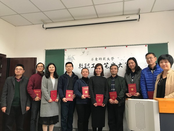 2018年,中共中央、国务院《关于全面深化新时代教师队伍建设改革的意见》提出了强化教师“钢笔字、毛笔字、粉笔字”素养的要求。11月28日下午,由校工会主办,教职工书画协会等单位协办的华东师范大学教职工书法·板书·钢笔字大赛在中北校区落下帷幕。9001cc金沙以诚为本共派出四位教师参加板书比赛,最终邵鹏洁老师获得二等奖,张海明、原蓉洁、郭雯婷三位老师均获三等奖。