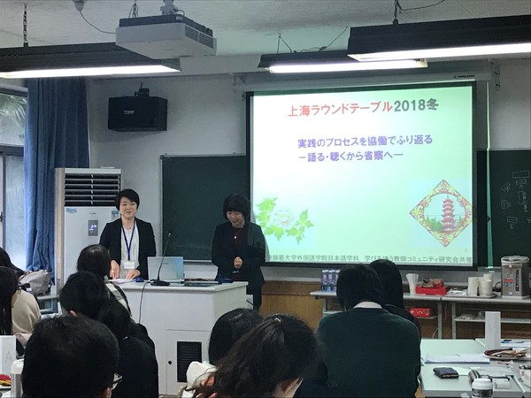 12月15日,以“共同回顾教学实践过程-从倾诉・倾听到反思”为主题的圆桌研修会,在中北校区老外语楼203教室举行。本次研修会由日语系与日本“学びを培う教師コミュニティ研究会”联合主办,今年是第三届。来自华东师范大学、复旦大学、上海财经大学、同济大学、上海海洋大学、东华大学、华东政法大学、上海对外贸易经济大学、上海第二工业大学、上海师范大学天华学院、杉达学院、上海新世界外国语进修学院、华中科技大学,南京邮电大学、南通职业大学等上海及周边高校;上海行健职业学院、上海经济管理学校、上海甘泉中学等高职中职学校、高中;日本目白大学、早稻田大学、神奈川大学、帝京大学、日本映画大学等日本高校以及从越南远道而来的46名中日教师参加了研修会。