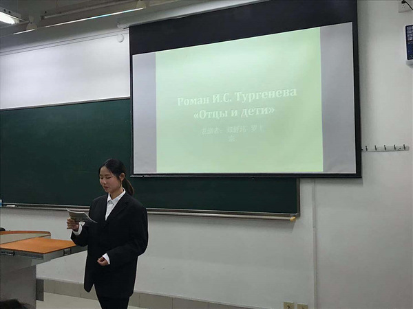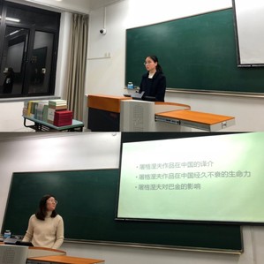 活动第一部分由18级的两名硕士研究生分别围绕“屠格涅夫作品的艺术特色”和“屠格涅夫在中国”两个主题展开精彩的学术演讲,系统介绍了屠格涅夫创作的艺术特点、屠格涅夫作品在中国的译介以及屠格涅夫对中国作家的影响。演讲内容丰富全面,学术性强,为低年级本科生带来一场小型的学术盛宴。