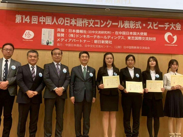 据悉,由日本侨报社·中日交流研究所主办的中国人日语作文大赛自2005年举办以来,参赛总人数已达到41490人。其中,本届大赛共征集到来自中国各地235所大专院校的4288篇作品。经过专家评审员的三次审核,最终由日本驻华大使横井裕从中挑选出最优秀奖(即“日本大使奖”)1名以及5个一等奖。日语系刘玲同学和陈诗雨同学分别获得了一等奖和三等奖,岛田友绘老师获得优秀指导教师奖。