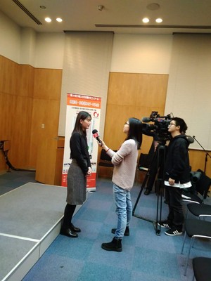 晩宴之前,在总领馆多功能厅举行的报告会上,获奖同学也做了自己的分享。朝日新闻、东京新闻、上海电视台等中日媒体采访了这两场活动。