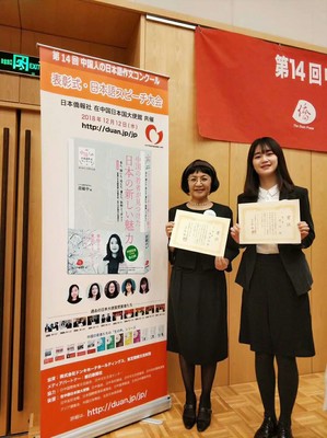 12月12日下午“第14届全中国日语作文大赛”表彰仪式暨作文演讲在日本国驻华大使馆举办。