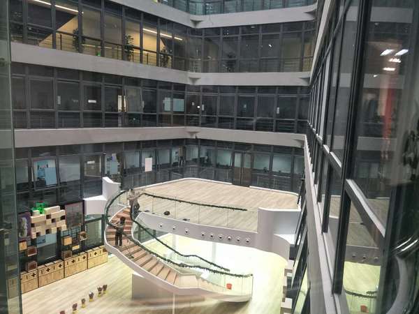 在同学们对教育培训企业的文化有了一定的了解后,由上海学而思英语产品线高级主管王文珺和上海学而思双师产品线副主管黄旭带领同学们进行企业参观。企业在工作区域内设置了教研室、阅读室、休息室、健身房等公共空间供员工使用,人性化工作周到细致。双师课堂丰富有趣。同学们还体验了公司先进的人脸识别技术,通过察觉课堂上每一位学生的表情信息,并及时反馈给授课老师,这让同学们感受到科技应用对教学方式进步的革命性开拓意义。
