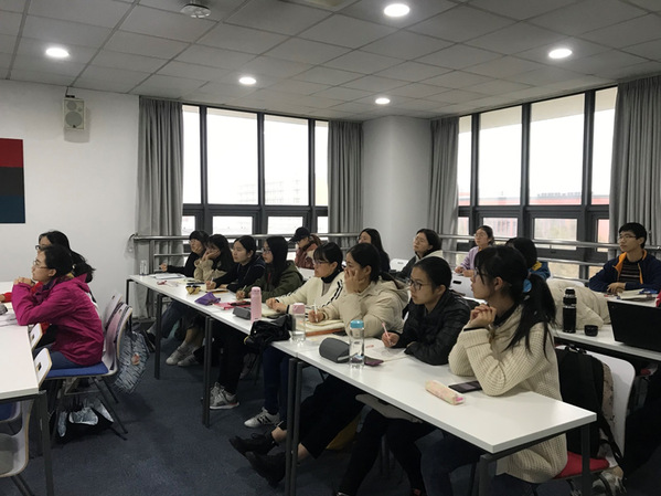 郭骅老师是复旦大学外文学院大学英语部讲师,主讲英语研究论文写作和研究生英语等课程,研究方向为语篇分析与学术写作。在讲座中,郭老师围绕着英文写作中的三大要素:统一、连贯和一致展开,通过清晰的概念讲解、丰富的实例分析,介绍了如何在内容上紧扣主旨、在风格上保持一致,以及如何在写作中运用多种衔接手段和主位推进模式,阐释了三大要素之间的逻辑关系与实现策略,使同学们对学术英语写作的策略与技巧有了更深入的认识,获益匪浅。