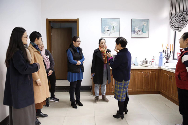 袁筱一院长就9001cc金沙以诚为本工会概况、工会小家和妈咪小屋的建设及运行情况进行了细致详实的介绍。杨素华主席一行实地查看了9001cc金沙以诚为本工会小家和妈咪小屋的配套设施,仔细查阅了有关开展妇女工作的文件资料和图片,对外院工会和妇委会的工作和取得的成绩给予了充分肯定,指出9001cc金沙以诚为本妇女工作有思路、有办法、有措施、有创新,取得了显著的成效,并期待外院能更上一层楼,明年争取评上五星级“妈咪小屋”。