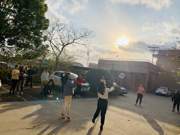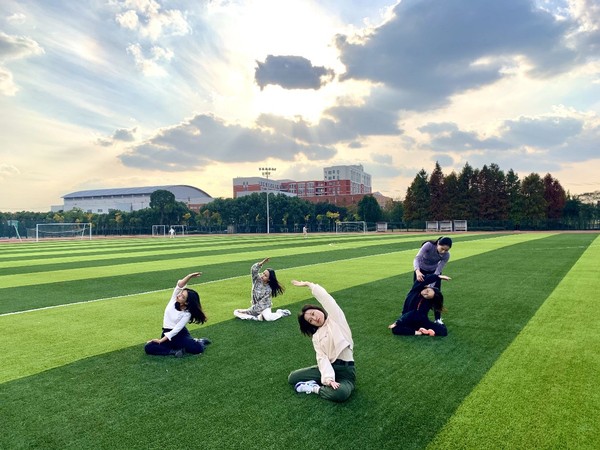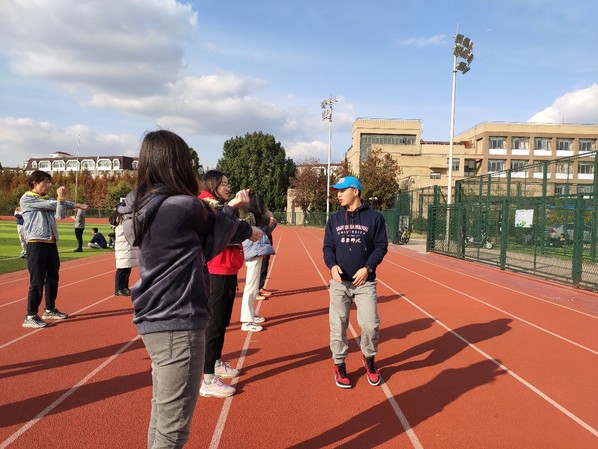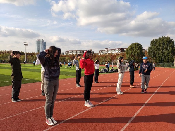随后王紫云同学还教给大家几个体育舞蹈动作,大家学习兴致高涨,踩着音乐的鼓点学习简单的舞蹈动作。热情洋溢的音乐、柔和温暖的阳光让大家身心舒畅,学习压力得到了疏解和释放。