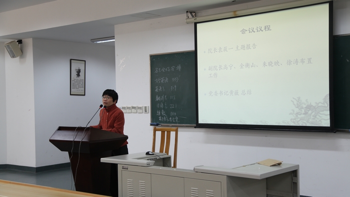 接着,高宁副院长就上学期以来的科研工作、各研究中心建设、研究生培养等方面进行了通报;金衡山副院长就本科生教学工作、学生评教情况进行了通报,并表彰了在各级教学评奖中获得殊荣的教师;徐涛副院长就学生当下的就业情况作了全面的通报,并就如何让教师全程参与学生就业辅导、实现全员育人谈了看法;朱晓映副院长提出了对于大学英语教学的改革以及对于学院行政管理结构调整、提升服务全院师生水平的设想。