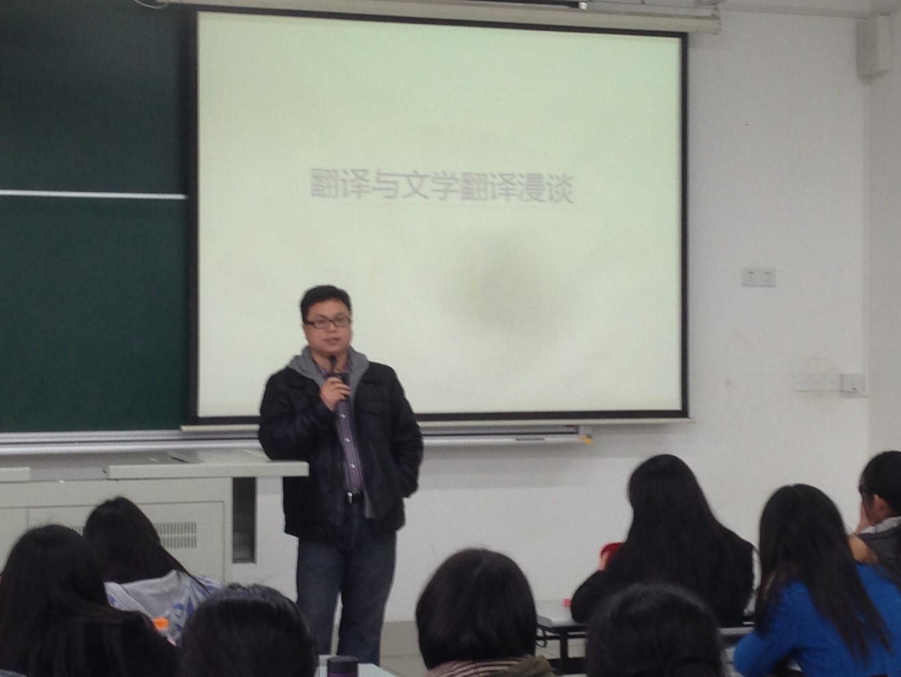 一个半小时的讲座沙龙很快过去,同学们对翻译有了大体的了解。应着赵刚老师说的“翻译需要多实践”的建议,工作室的第一次翻译作品实践立即启动,优秀作品将刊登在每个月推出的电子杂志《语丝》上。(金康)