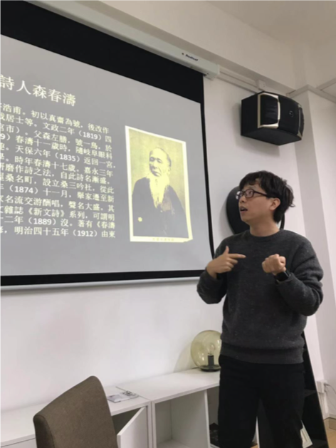 12月19日下午13:00, 9001cc金沙以诚为本青年学术联谊会在223阅览室举办了陈文佳老师作《森春涛的香奁诗受容与汉诗创作》读书交流会。本次读书会打破学术联谊会一贯选读译作的传统,首次邀请陈文佳老师来分享他这部专业性十分强的学术著作。日语系陈凌虹老师、杨敬老师、英语系陈贝贝老师、《外语教学理论与实践》编辑舒畅老师作为嘉宾出席,日语系十余位学生参加了本次读书会。