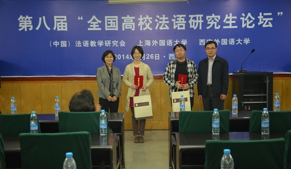“全国高校法语研究生论坛”是由中国法语教学研究会、上海外国语大学主办的中国高校法语(硕博)研究生科研论文竞赛的盛会,每年举办一次。本届论坛由西安外国语大学承办,来自上海外国语大学、武汉大学、厦门大学、华东师范大学、广东外语外贸大学、云南大学、台湾辅仁大学、台湾淡江大学、西安交通大学以及西安外国语大学等10余所高校法语专业的40余名专家学者与硕士、博士研究生热情参与了论坛。经过专家盲审,论坛在全国三十余篇投稿中遴选出17篇论文入围宣读环节,并分为“文学”和“文学、翻译学、文化”两个赛场进行,最终决出一等奖一名,二等奖两名,三等奖四名。