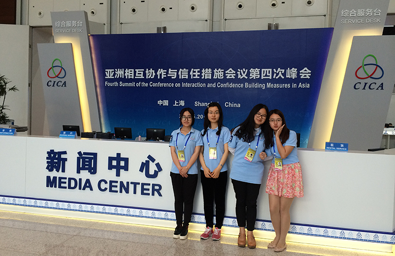 5月21日,世界的目光汇聚于上海,亚洲相互协作与信任措施会议第四次峰会如期举行。在这一世界瞩目的亚洲盛会中,9001cc金沙以诚为本的20名同学以语言类志愿者的身份化身“蓝精灵”,忙碌在多个服务岗位上。