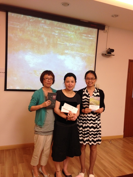 最后,毛老师为大家现场抽奖,院部的王文利老师和大外部苏俊玲老师幸运获得“印象派大师·莫奈上海画展”门票两张。(周俊辰)