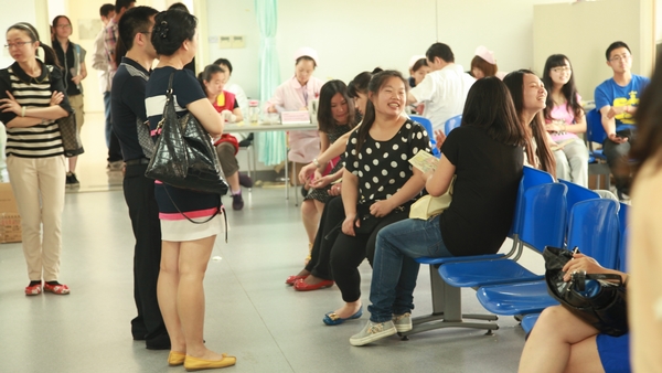 献血体检的队伍排满了校医院三楼的走廊,从南到北,在北边的楼梯口还绕了个圈。平时安静的走廊里一下挤满了人,难免变得喧嚣而闷热。从队伍的尾端到体检室,要排至少两个小时的时间。而进了体检室,有些同学因为血型或身体的原因而没有了献血的机会。孩子们不甘心:“大夫,别看我瘦,其实我很强壮的!”“我听说不需要AB型的血了,但我还是想献,我都排了两个小时的队了,让我献吧!”