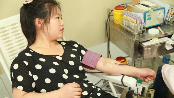 当大四英语系的张贞贞在大学期间第四次坐在献血的座位上时,老师们在一边守着。这个朴实的小姑娘微笑着打了个“V”字手势说:“老师不用担心我,经验丰富着呢!你们去照顾其他同学吧。”献完血后,她一边摁着手臂,一边照顾着自己的同学。当庄瑜老师说起贞贞大学四年每年都来献血时,她说:“每次都能够顺利献血也是一件幸福的事情,大学四年圆满了!”