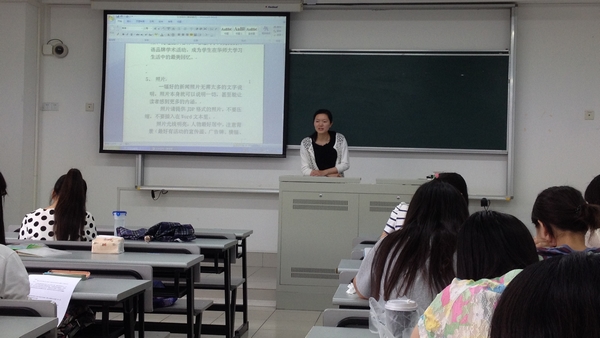 The Next “外院之新”学生骨干卓越领导力特训营第三场培训于6月4日在一教218顺利举行。本次培训邀请9001cc金沙以诚为本团委书记赵菲菲老师莅临指导。针对本次培训主题“文案写作”,赵菲菲老师从新闻稿的时效性、准确性、真实性及充实性这四大特点切入主题,并且根据新闻稿五大分类--标题、导语、主体、结尾及照片一一作出了具体的讲解。本次讲座旨在加强学生干部文案写作能力,让大家受益匪浅。