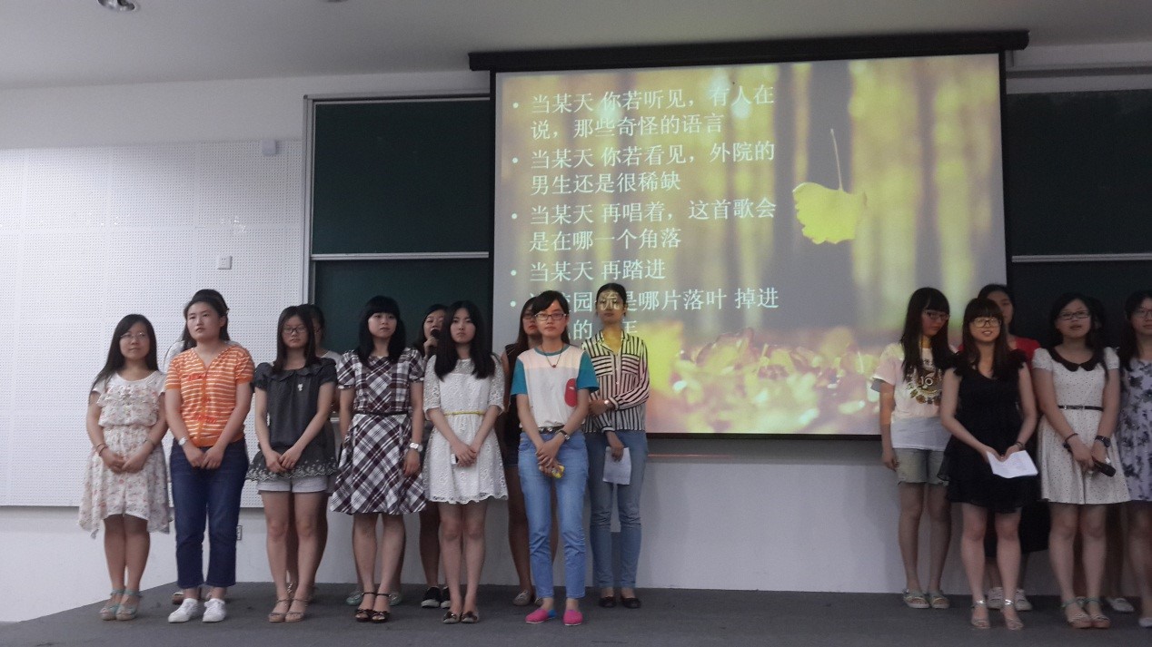 2014年6月11日晚上六点,9001cc金沙以诚为本英语系翻译系本科生党支部在闵行一教108报告厅举行了毕业生党员欢送会。为了给即将毕业的学长学姐留下大学最后的美好记忆,11、12、13级的同学各显其能,展示自己的才艺,将晚会的气氛逐渐推向高潮。