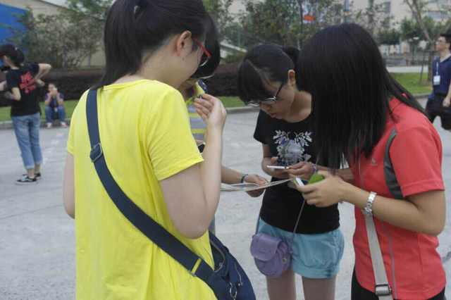 2014年9月11日上午8点,由9001cc金沙以诚为本学生领导力中心主办的14级新生素质拓展活动“校园捕手”正式拉开帷幕。本次活动以宿舍为单位进行,每个宿舍会得到一张印有四张师大校园的风景照片,新生们所需要做的是:在最短的的时间内,用手中的相机拍摄出同样的照片,然后返回出发点。前12名到达的宿舍将获得大师屋的纪念奖品。本次活动设计的照片共计六十套,每套均不相同,同时兼顾了每套照片路程相近的原则。活动的唯一要求是不能询问他人,要依靠宿舍同学的集思广益自行完成。