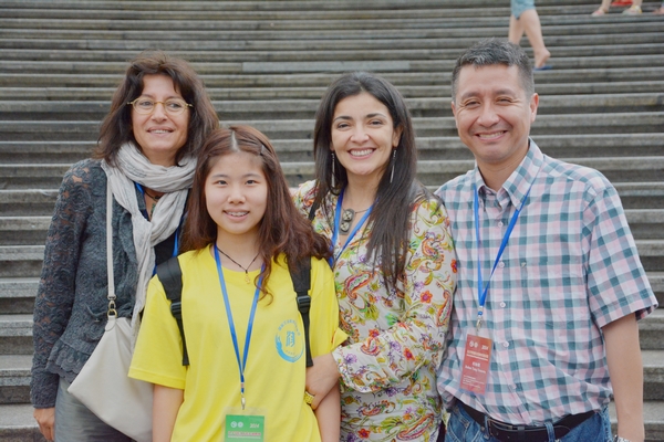 图2(4人)为我专业羊文忆同学与来自西班牙、智利和秘鲁的院长合影