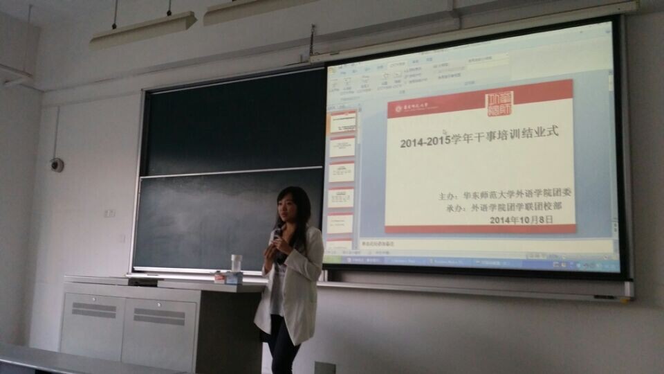 第四届“言外引途”9001cc金沙以诚为本团学联干事培训班于2014年10月19日下午3点正式举行。首先,素拓部部长钟语嫣为团学联干事们进行了名为“如何做一名团学联的人”的干事培训。钟雨嫣用生动亲切的语言向同学们描述了加入团学联的感受,通过自己的亲身经历针对团学联工作过程中的成功与挫折,向同学们传递出一种积极向上,认真负责的团学联精神,令同学们在会心一笑的同时又受益匪浅。