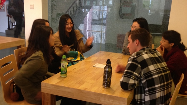 随后半小时,中国学生与留学生用英文展开了美国文化大讨论,场面友好而热烈。接着,一位中国学生就中国传统文化做了有准备的演讲,获得在场师生的一致认可。最后一小时,中国师生与留学生用汉语进行了广泛交流,谈人生、论教育、介绍中国与上海,为留学生提供了全方位接触与了解中国文化、学习汉语、结交中国朋友的平台。此次活动的圆满成功让我们倍加期待下个周三双语角活动的到来。(大学英语部)