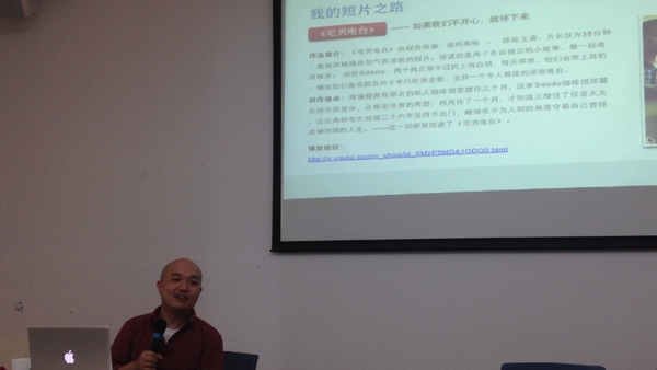 6月10日下午14:30,在中北理科大楼A228会议室,一场主题为《一部互联网电影的诞生》的沙龙在此举办。这也是学院成功申请2015年校青年教师发展基金项目《胶片世界——百年中国电影纵横谈》的首次活动。本次沙龙邀请上影集团的青年导演、知名微电影导演程亮主讲。学院副书记庄瑜老师主持,学院部分教师和本科生影视翻译工作室、戏剧工作室成员参加。