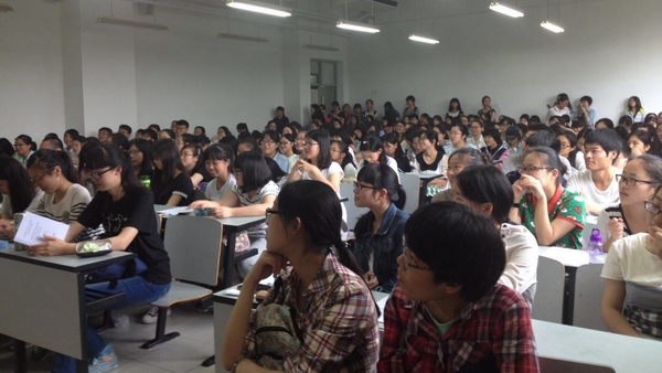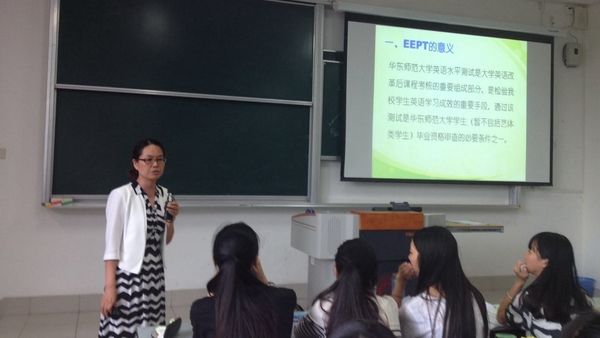 苏老师和桑老师分赴闵行和中北两个校区,在闵行校区第二教学楼108教室和中北校区文史楼301教室,为两个校区近两百位同学同步带来了一场内容全面、数据详实、针对性强的讲座。他们首先介绍了华东师范大学英语水平测试理念、特点和口、笔试题型。随后,结合2014年度首次英语水平测试成绩数据分析,两位教师就听力、阅读、写作、翻译和口语分别提供了具体、可行的备考策略与建议。会后,两位教师继续与部分学生进行了持久、深入的探讨与交流。