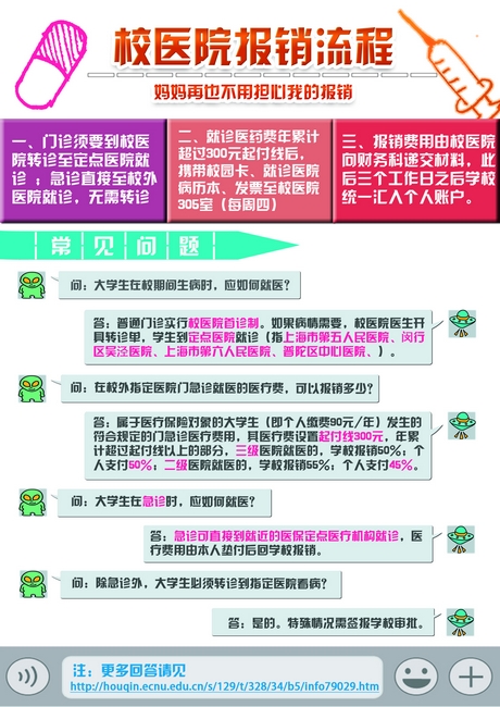 为帮助新生了解学校、学院,更快地适应大学生活,9001cc金沙以诚为本为新生精心制作了“一张图看懂外院”的系列宣传页。宣传页共有8张,用清晰的表格、生动的解释、鲜艳的色彩呈现出与学生关系最密切的信息,例如部门电话与网址、学工部系统及选课系统的使用说明,校医院报销流程、科研申请流程等。
