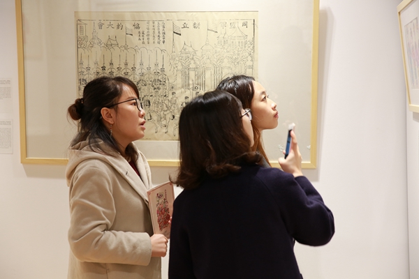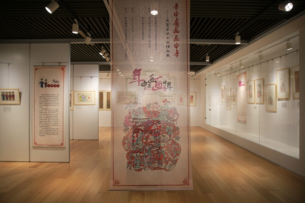 展厅经过用心的装修和布置,并以中国传统年画为核心,分六个单元展览了李文墨先生(年画收藏爱好者、文墨堂主人、高级规划师)私人珍藏中的56幅作品。讲解员认真生动的讲解每幅画的意义和特点以及其所反映的时代文化背景,深深吸引了在场师生。