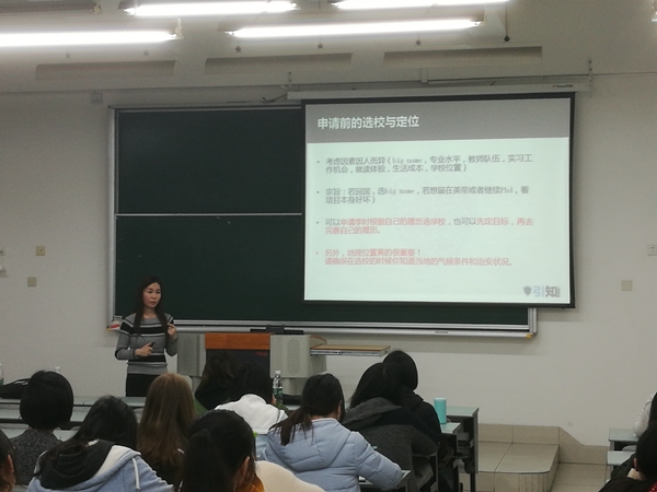 几位讲师在讲座中为同学们仔细讲述了中国学生出国留学申请所需要的准备内容以及注意事项,例如申请材料等,尤其强调了学生社会实践经验对于留学申请的重要性。讲座最后,嘉宾热情地为同学们答疑解惑,认真提出对未来的建议和意见,使大家受益匪浅。(图文:叶怡豪)