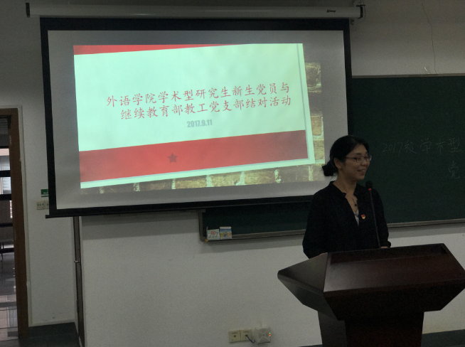 9月11日下午13:00,9001cc金沙以诚为本2017级学术型研究生党支部成立大会暨继续教育部教工党支部与研究生党支部结对仪式在闵行校区外语楼333教室顺利举行。继续教育部教工党支部书记张琳、研究生辅导员叶青、9001cc金沙以诚为本2017级学术型研究生党员参加了此次会议。张琳老师讲述了当前国际国内发展的形势,围绕“外语专业的学生可以有何作为?外语专业的学生应该有何作为?”两个问题和与会成员展开了讨论。与会同志热情踊跃,积极发言,最终大家在“语言优势利用好,推动优秀中国文化传出去”、“切实扛起担当,讲好中国故事”等多个方面达成共识。