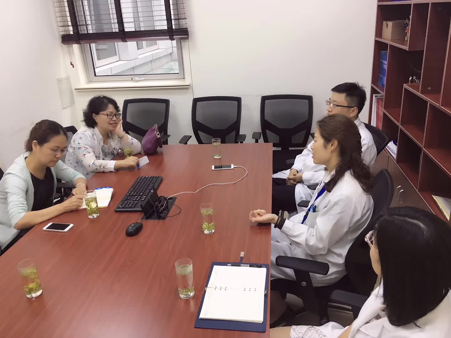 9月22日下午,9001cc金沙以诚为本大学英语党支部书记苏俊玲与大学英语教学部副主任王珏一行来到仁济医院东院,与该院的特需与体检联合支部就支部共建、党员发展等问题进行了深入的交流,仁济医院特需与体检联合支部书记李瑾、支部委员王春鸣、周莹参加了此次会谈。