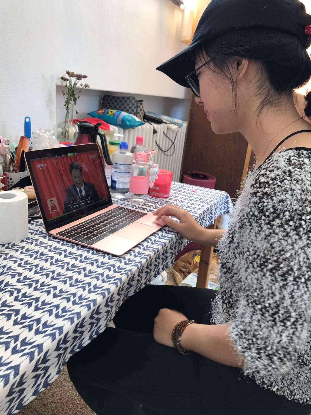 2015级法语专业本科生党员梁悦在比利时布鲁塞尔自由大学交流学习。十九大开幕的时间正是布鲁塞尔的午夜。18日早上6:00,梁悦起来第一件事就是收看十九大开幕会的转播。看完之后,她表示:“十九大开幕了,尽管因为身在国外没有办法和同学与老师们一起收看直播,但是自己在异乡也同样关注着十九大的消息,定时收看关心国家动态,这不仅是来自于一个共产党员的使命感和责任感,更是异国他乡的学子对祖国深深的思念以及作为一名党员的自豪。祝十九大圆满成功,祖国发展越来越好。”