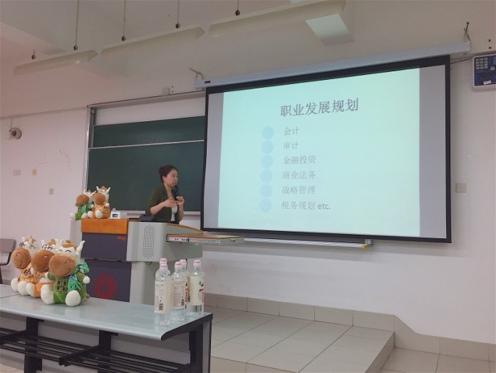 Victor讲师在讲座中详细介绍考研、出国、就业与考证如ACCA等多种选择,并且分析利弊以及未来发展方向在互动环节中,同学们向嘉宾积极提问,讲师一一耐心解答。