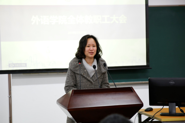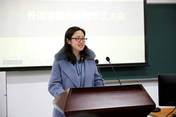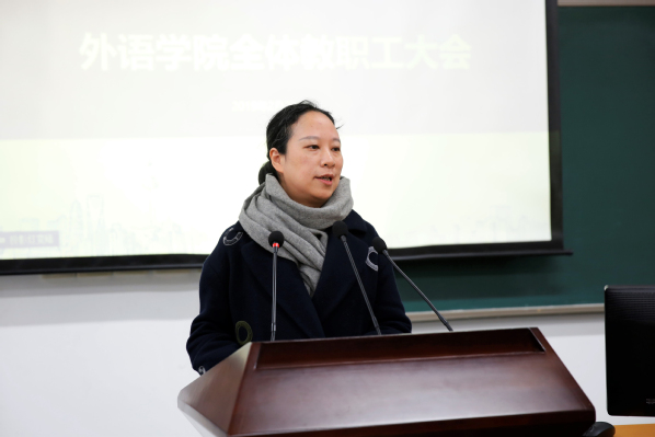 最后,会议宣布任命高冬琴为学院新任办公室主任,通报2018年高级专业技术职务评聘结果及《澳大利亚纵横》、《德语国家社会与文化》、《法国现代文学经典》、《东亚文化视野下的日本语言文学》四门在线开放课程上线的相关情况。