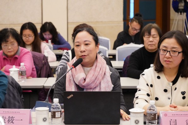 虞苏美先生的同学与好友李慧琴、吴稚倩、陈美芳纷纷回忆了与虞先生共事的岁月,追忆了记忆中先生为人、为师、为学的点点滴滴。与虞先生一起编写《大学英语·听说教程》的李慧琴教授,回忆起与自己相知60年的“闺蜜”与搭档,几度哽咽,泣不成声。吴稚倩教授朗读了她与虞先生共同的精读老师熊家韫所书写的“忆苏美”一文,并追忆了虞先生的治学精神。在虞先生的同学与好友的心目中,虞先生是德才兼备的“女神”,在学识上才高咏絮,汉语英语造诣皆高,唐诗宋词脱口而出,琴棋书画样样精通;在治学上精益求精、极致严谨,“她修改教材从来不留情面,甚至改到只剩下原文的两个字”;在为人处事上又高风亮节,恢廓大度,不图名利,低调谦逊,“我和苏美那么亲,却是在报上看到新闻才知道,她翻译了《三国演义》”;但对于老师、对于学生、对于亲人,甚至陌生人,虞苏美先生都会体恤关怀,出手相助,“当我们得知苏美不幸离去,同学们纷纷在群里面回忆苏美对于自己的帮助,这么多人都视苏美为自己的好友,都受到过苏美的帮助,实在令人惊讶!令人感动!令人敬佩!”