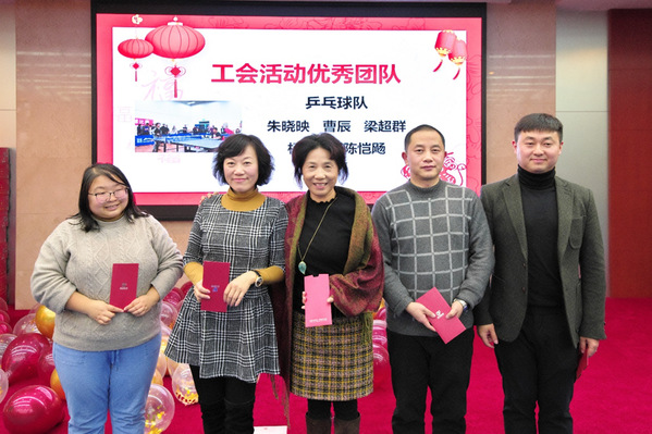 表彰工会活动优秀团队乒乓球队:梁超群(陈贝贝代领)、曹辰、朱晓映、杨建培、陈恺飏