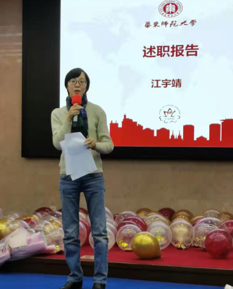 随后,江宇靖老师进行了述职报告,就履行学院党委副书记、副院长职责;全心全意服务群众;工作不足与改善措施等方面进行了述职。全院教职工听取了述职报告,对江老师的工作给予了高度评价。