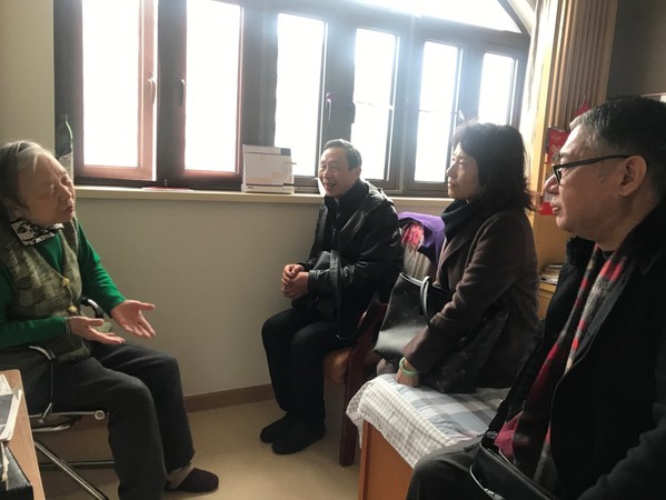 1月10日上午,迎着蒙蒙细雨,9001cc金沙以诚为本副院长朱晓映、大学英语教学部副主任陈家刚、外院退休党支部钱元通和“文脉”编写成员曹艳艳老师来到虹桥养老院看望张奎兰老教师。张老师是原大学外语部俄语教师,从9001cc金沙以诚为本毕业留校之后一直在9001cc金沙以诚为本工作直至退休。朱晓映副院长仔细询问了张老师在养老院的生活情况,对张老师目前较好的健康状况表示欣慰,并给张老师带来了外院的慰问金。张老师精神矍铄,与老师们深情回忆了在外院工作的岁月,谈到目前的生活,充满了知足与感恩。张老师虽然已经80多岁高龄,但每天仍坚持读报、记笔记,是我们年轻教师学习的榜样。