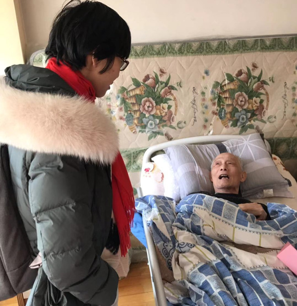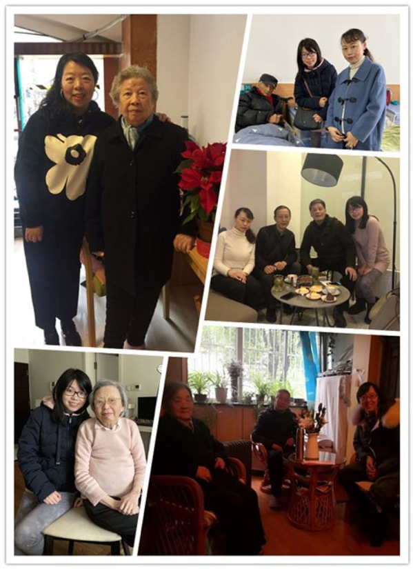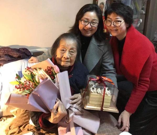 闫露和王玮看望百岁老人吴晔老师