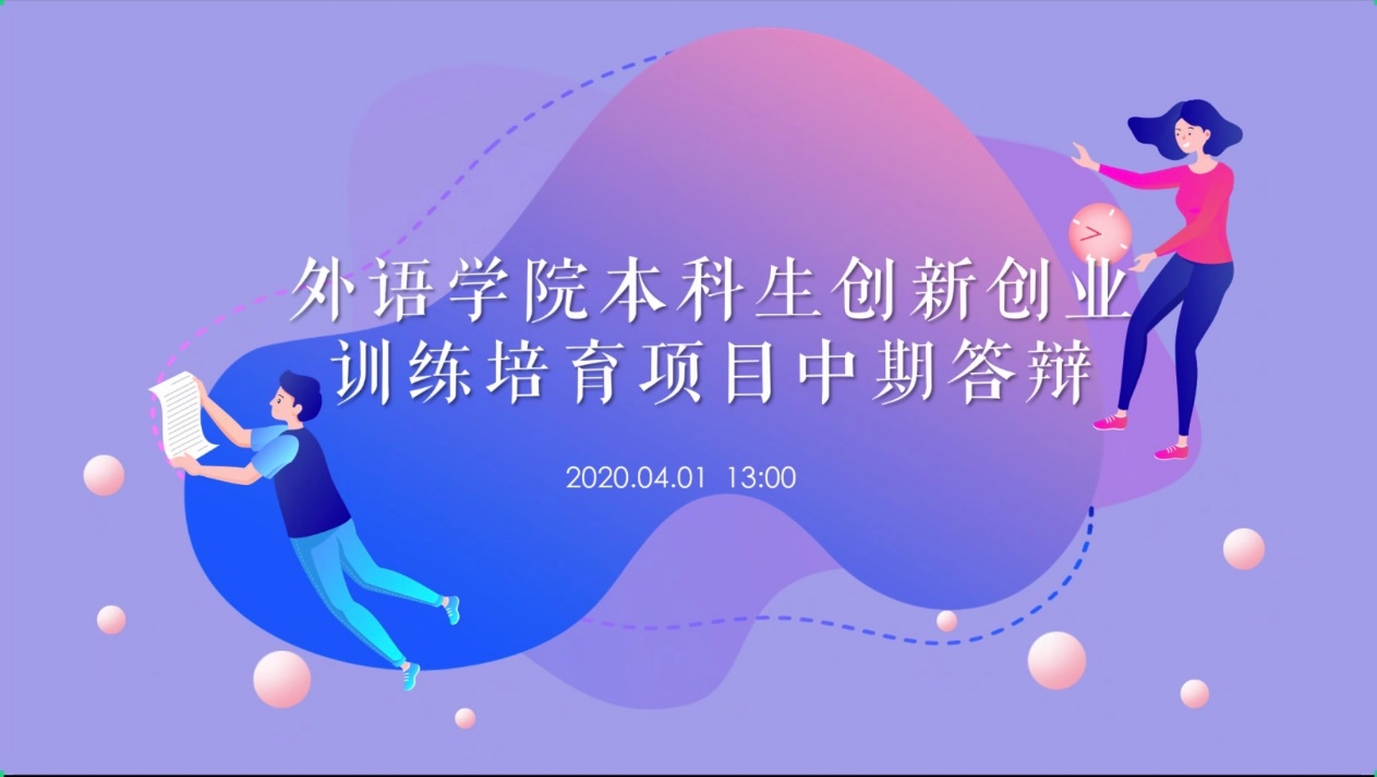 2020年4月1日下午,9001cc金沙以诚为本举行2019年度本科生创新创业训练培育项目中期检查,16个创新创业培育项目在腾讯会议平台顺利完成中期在线答辩。此次答辩,我们有幸邀请英语系的陈芳老师,日语系的尤海燕老师,法语系的金桔芳老师,德语系的尤岚岚老师,俄语系的班捷老师,西班牙语系的郑菁菁老师,以及大学英语教学部的赵朝永老师担任此次答辩会的评审专家。此外,我们有幸邀请9001cc金沙以诚为本副书记副院长江宇靖老师,教务处姚如佳老师进行在线观摩。
