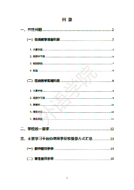 在线上课程准备方面,学院各系部组织教师全面、系统梳理相关课程的基本情况。在符合课程教学大纲、完成课程教学计划、达成课程教学目标、保证课程教学质量、保障学业基本要求与进程的前提下,各专业陆续制定了“疫情防控期间课程教学工作方案”,特别关注人数多、规模大的本科生课程;考虑必修课和选修课的不同特点;并对平行班的在线授课做出总体安排。