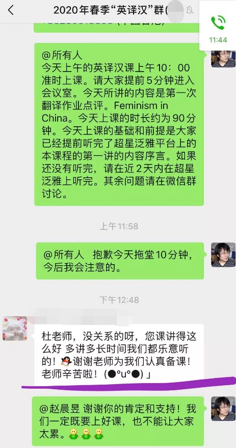 翻译系杜振东老师、英语系全建强老师课后学生反馈