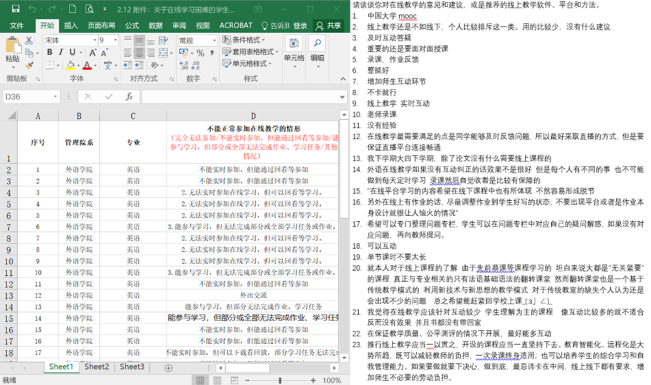 学院和书院共同对在线学习困难学生及学生意见进行调查