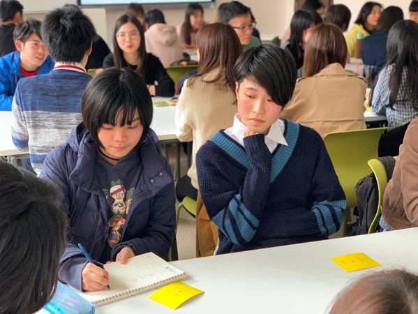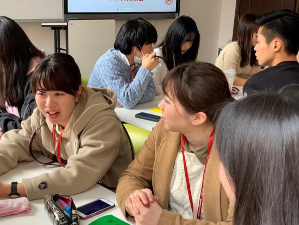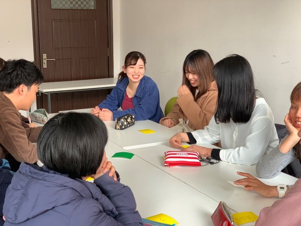 中国学生中也有一些有留学经验的前辈在。当被问到“来到日本后觉得有些惊讶的文化有什么”的问题时,有一位同学分享了他在日本打工的经验:“我一般是晚上当班。但是不管我几点去上班,大家打招呼的时候都会用‘早上好’,这是为什么呢?”许多日本学生纷纷陷入了沉思中。一位日本女生不太确定地回答,“可能是向比自己来的早的人打招呼吧……其实我也不知道,但是大家都这样用,自己也自然地用了。”通过交流,的确是可以发现许多自己作为母语者、作为一直生存在这种文化环境中的一员所忽视的“不合理”的事情。这对于我们理解其他文化、反思自己的文化也是非常有启示作用的。