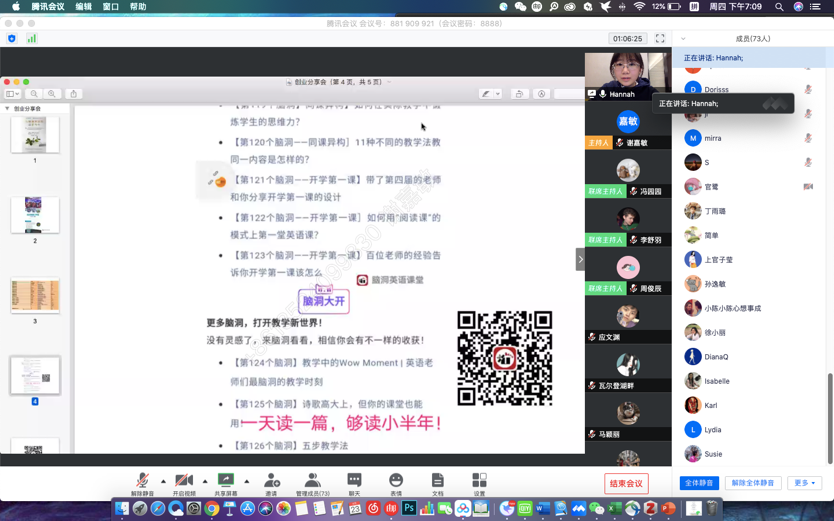 第二部分,史东东分享了关于个人创业的经历。她在读研前曾经就职于一家汽车公司,任行政助理一职,实习期间她意识到自己并不适合企业的工作氛围;于是,读研期间,她选择了另外的方向,去了一所民办学校实习,并顺利留下。工作后,她阅读了关于脑洞课堂的文章,发现这个话题非常有趣,于是她主动与文章编辑联系。在多次交流后,她们一起举办了脑洞课堂的活动,发现了许多新颖的教学方法和教学思路。2019年7月,她决定要成立一家工作坊,以戏剧英语为基础,将课堂与英语戏剧相结合。最后,在多次举办公益讲座活动以及脑洞课堂的推广后,她发现了许多志同道合的朋友和伙伴,创立了自己的公司。
